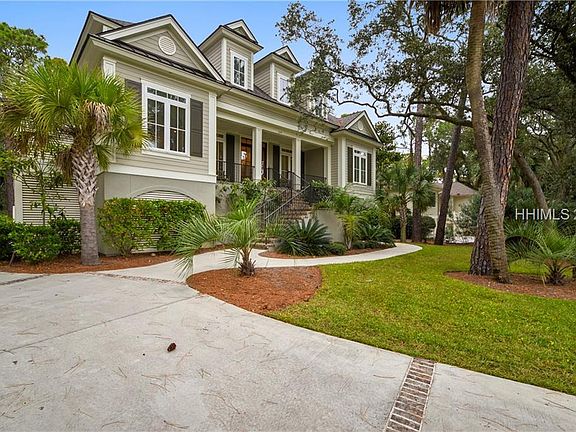 Lovely 3rd row ocean home with 5BR/4.5BA located on the beautiful 11 mile lagoon system in the world famous Palmetto Dunes Resort. Three minute walk to the beach on a beach path near the front driveway. With lush tropical landscaping enjoy outdoor entertainment with a fishing dock, a stunning heated pool, hot tub, firepit and outdoor kitchen with gas grill. This home is like new - built in 2016. Master on 1st level with 4 guest suites. Second floor with family room/game room. Well appointed with tray ceilings, private outdoor setting, 5-burner gas stove, wrap-around bar, beautifully decorated. Excellent rentals! 2020 grossed $155,000.