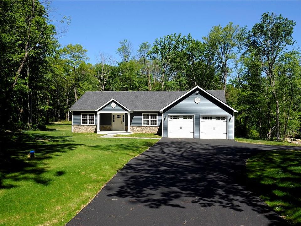 VACANT NEW CONSTRUCTION AVAILABLE FOR VIEWING. A virtual Open House at the end of these remarks is also available. NEW CONSTRUCTION RANCH is now available with an open floor plan by a custom master craftsman builder. This 3 bedroom plus office plan is nicely sized at nearly 2100sf, with potential for more bedroom space and living options. Conveniently located on a premium level 3.62 acres building lot, this architecturally pleasing home with a stone and vinyl maintenance free exterior offers a sought after open floor plan with premium upgrades throughout. This ranch style house (still with time to pick some colors) uniquely splits to one side a large master suite and two bedrooms and bath to the other side. Premium wood floors throughout (except for tiled bathrooms) accentuate the generously sized rooms. Featuring a welcoming front porch and delightful 16' x 16' deck with a westerly exposure and a view of the expansive rear yard beckoning a future in-ground pool. The complementary house and yard combination are sure to be noticed by the discerning buyer. Built with great care and sensitivity to efficiency (including a modern HVAC system and superior spray foam insulation) this modern construction home offers exceptional value over older homes. The unfinished walkout basement offers easy storage and opportunity for future enhancements and use. The attention to detail even extends into the attached 2 car garage designed and built without center beam support poles and with tall doors that easily accommodate the large SUV's favored by many buyers. Opportunity is at hand for this select custom built home that is clearly distinguished from other "cookie cutter" new home offering. Please be patient while the tour loads. #VirtualOpenHouse https://drive.google.com/open?id=12PCDBtN-x9kd44PZxy03WneVl_xrC61t 04/29/2020 12:00AM - 2:00PM Additional Information: Amenities:Storage,ParkingFeatures:2 Car Attached,