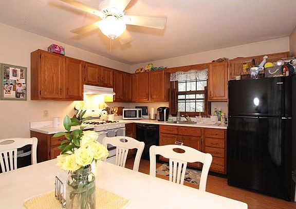 4 Bedroom Cape features; Large Living room with fireplace, eat in kitchen, 2 main level bedrooms, Huge second floor master bedroom, 2 full baths, full basement, off street parking.