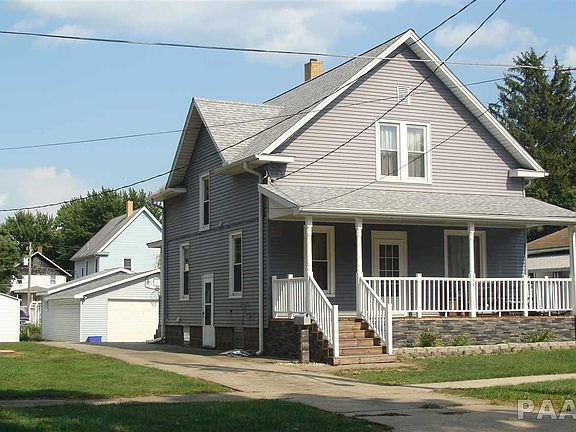 Nice 3 possible 4 bedroom home in a great neighborhood. This home has great curb appeal with a very large detached garage. Most recent updates include floor coverings, new front porch, roof 4 years old on house & garage plus newer windows. Master bedroom has a large walk in closet. Full basement is partially finished with many possibilities. Half bath on main and in basement with a full bath upstairs. 1/2 block to a great park and not a far walk from downtown. This is a great family home-- come and look today!! Microwave & dishwasher stay (not warranted)