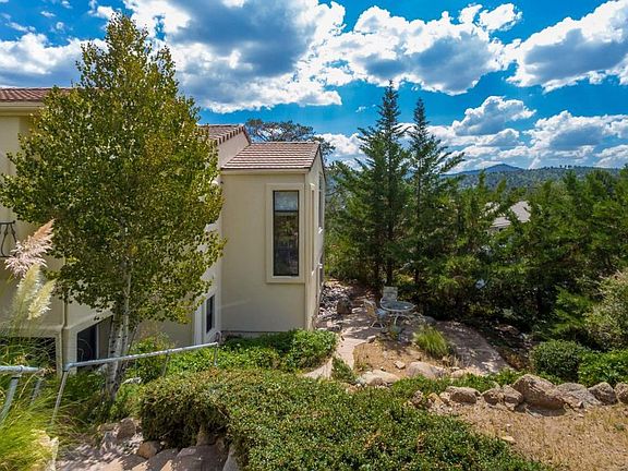 Seller is Motivated to sell this beautiful home with Villa like atmosphere and absolutely stunning views! This property is sure to impress from the French railings to the fabulous library/den with window seat. This home exudes charm! Spectacular views of Thumb Butte & the surrounding National Forest. Large Chef's kitchen with 2 convection ovens and new 5 burner gas range. Great room with beautiful wood floors and corner fireplace. Master suite has a fireplace and private deck, plus sunken jetted tub and bidet. Second and third bedrooms are on the lower level and are also suites. Beautiful outdoor setting with tiered flagstone terraces and walkways, plus a water feature. Come enjoy the incredible views from this impressive home!
