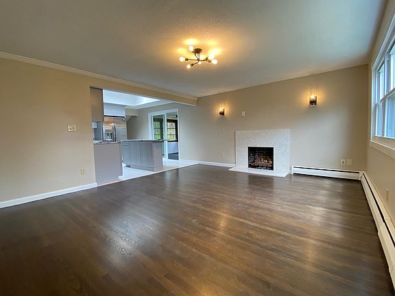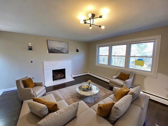WATERVIEW 1760 s/f 3 bedroom ranch on a private 1.4 ACRE lot. Home had the kitchen and baths redone to the subfloor and studs. Bright skylit cathedral ceiling island kitchen with granite, tile, and stainless appliances (air fryer range, dishwasher, microwave, French door fridge) Decora soft close Cabinets and a Slider to a 4 season sunroom and big deck looking over the large flat back yard. Kitchen also opens to the large living room that has a picture window looking across to the pond. Remote control gas fireplace with quartz surround, sconce lights, and outlet for flat screen TV. Refinished hardwood floors through the living room, hall and bedrooms. New tile bath. Downstairs the walk out basement and garage has 3 rooms. Currently has a laundry/mudroom, office/bonus room, family/ guest room and 2 closets. Cedar exterior siding. New roof, boiler, plumbing, electric panel. Outside has a large shed with power and trails through the woods on the property to the Spicket River (not a flood zone). Hardscaping with a stone wall entry, tiered gardens and walk. Plenty of attic storage with a pull down stair. Option for additional bath in lower level. Broker interest