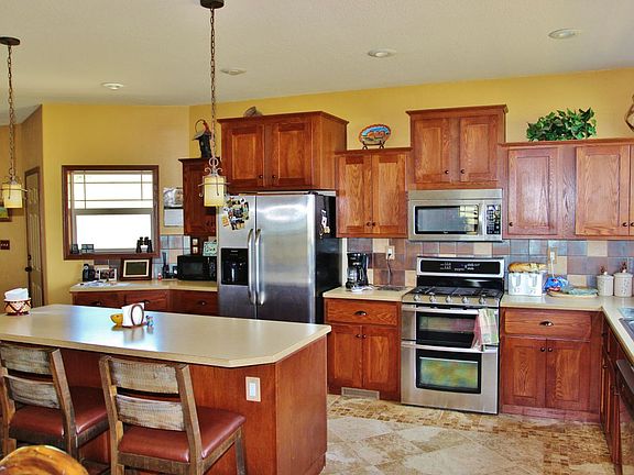 Stretched over +/-165.95 acres, this property has a lot to offer. The home; a beautiful 3 bed 2 bath with an attractive eat-in kitchen and plenty of living space. This home is stunning, with tasteful paint color on the walls right down to beautiful tile and wood flooring. The exterior is where it's at starting with a wraparound deck and a two car garage then throw in the additional out buildings you got yourself a little slice of heaven. The out buildings consist of 24 x 60 Shop with loft. 36 x 60 hanger, 12 x 60 open ended trailer port, 36 x 36 Stall barn (3 stalls, tack-up area and tack room) and the 80 x 120 indoor riding arena.
