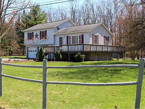 This immaculate three bedroom tri-level home is convenient to Ithaca College, Cayuga Medical Center, Cornell, and downtown Ithaca. In addition to the spacious three bedrooms and two full baths, there's a finished lower level with its own kitchenette, additional full bath and bonus room. The two-car garage provides plenty of room for a workshop and laundry. The wraparound porch overlooks a level yard, with gardening shed and a large outbuilding. This home is neat as a pin; all play and no work!