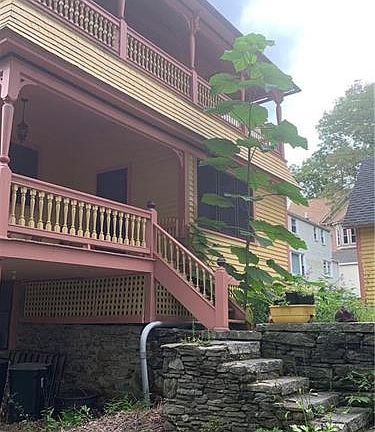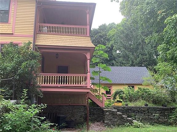 159 North St. is a shining gem of an authentically maintained 1898 Queen Anne Victorian style home with all of the elaborate details and craftsmanship that defined that era of extravagance and eccentricity. First and 2nd floor rooms are all 9' ceilings with stunning ceiling ornamentation ranging from elaborate patterns of gold leaf to ceiling roses and medallions. Wood inlay around the perimeters of the first floor rooms and 2nd floor hall, stunning workmanship on the brackets, entablature, columns and pedestals of the three porches, stained glass windows, marble faced fireplace, turned staircase, large bedrooms, one of which has been turned into a theater that easily seats 12 are hallmarks of this stately home. The third floor has two more bedrooms, living room and kitchen and full bath and could be an in-law apartment without much difficulty. A walk out basement has a finished rec room, laundry and tons of storage. All of this is within walking distance to bustling downtown Willimantic, bus routes, Eastern CT State University, 10 minutes from Storrs Center and UConn, and easy drive to the Route 6 connector and Hartford or the CT shoreline.