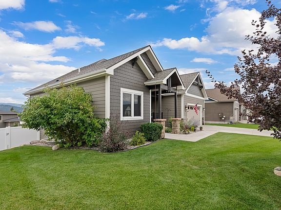 Discover this beautifully immaculate former model home in a quiet, tucked-away location just minutes from shopping, dining, and more. The open layout offers plenty of space for everyday living and entertaining, with a welcoming great room featuring a cozy fireplace, a bright kitchen with kitchen aid appliance, granite counter tops, and a separate dining area. The main level hosts a spacious primary suite with walk-in closet and private bath, plus a second bedroom and full bath. Enjoy indoor-outdoor living with access to a large back deck. Lots of storage thru out. The walk-out basement adds three more bedrooms, a full bath, a large family/rec room, and a charming nook ideal for an office or reading spot. A heated two-car garage with built-in storage completes the package. This home delivers comfort, convenience, and quality in one perfect package. Fresh interior, exterior paint and carpet. Discover Kalispell Living