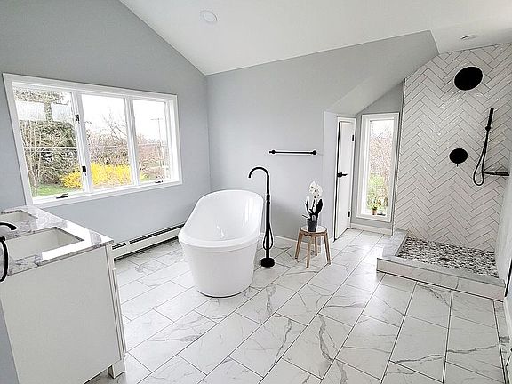 Complete professional renovation of this 1921 home on 1.03 acres. New 30-year roof, siding, plumbing, electrical, windows, doors, spray foam insulation, mini-split air/heat plus oil heat. 800 sq. ft. decking. Main level bedroom, mudroom, open concept kitchen/dining, living room & sunroom. Lower level bedroom/full bath with separate entrance. Surrounded by farms and wineries. 10' x 24' storage shed. Plenty of parking. $8,600 taxes. Marlboro Schools & water.