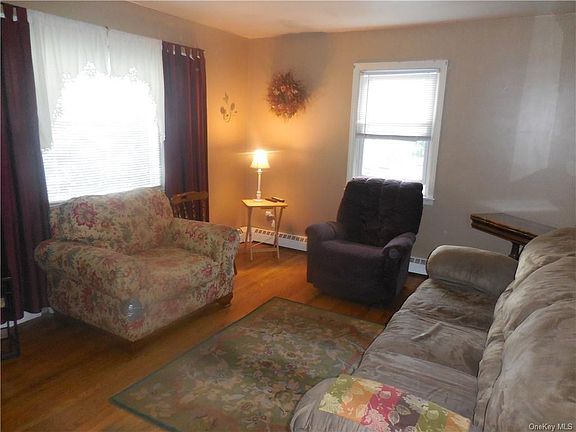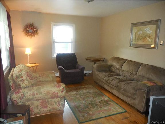 TOWN OF NEWBURGH 1248' RANCH. Affordable home with low taxes on a level lot with easy access and 5 minutes to all major shopping destinations of the area and I-84 & I-87. Living room with hardwood flooring, eat-in kitchen, full bathroom with tub, ceramic tiled flooring and walls, 2 bedrooms plus an additional room with own exterior door access. Full walk-out basement, one open space with bilco door is used for the laundry area with washer and dryer, utility room and storage. Walk-up spacious unfinished attic for extra future possibilities. One car garage plus extra storage for tools. Patio off the paved driveway will lead you to the side access to house through breezeway between the garage and the kitchen which adds to character of this older but charming cozy home and also provides access to back deck overlooking the patio and green level backyard. Green level front yard provides access from the walkway to front main entrance of this nostalgic home. Well maintain newer roof.
