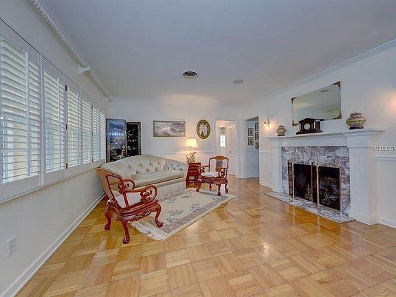 Tranquil home setting in the heart of Belleair, this 3 BR, 3 BA split planned, pool home greets you with wood floors and a wood-burning fireplace. Large family room has an open view to pool area and back garden. 2BR and a BA easily close off to create private guest or in-law quarters. Double door entry opens to owner's retreat with plenty of light from French doors and windows, his and her closets, and an updated master bath complete with dual sinks, shower and separate WC. Kitchen aglow with white cabinetry, granite counters and a gas range. Doors and windows are newer, new sprinkler pump, shingle roof done in 2015, AC handler June 2016, and refrigerator July 2016.