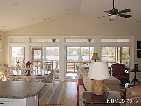 Spectacular waterviews are yours inside & out! Beautiful finishes, quality cabinets and appl., hdwood floors. Pier w/covered boatlift, 1800 sf of parking/slab under house w/bath for cleanup after boating. No flooding. Owner licensed NC Realtor. $150 voluntary HOA for annual road, boatramp maint.