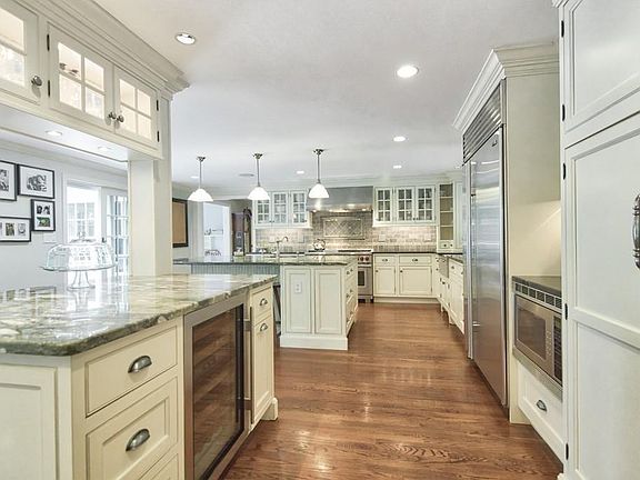 This elegant, classically designed Colonial Farmhouse offers exceptional renovated and updated spaces for today's living. The magnificent chef's kitchen offers professional appliances, custom cabinetry, 2 dishwashers, warming drawer, seating at the large island w/2nd sink & granite counters. The add'l center island beverage bar w/wine fridge & breakfast area create an open atmosphere for cooking and entertaining. Dine fireside in the formal dining room or relax in the large family room w/custom built ins, fireplace & French doors to beautiful screen porch. Mudroom w/built in benches & cubbies plus two powder rooms & living room round out the 1st floor. The 2nd flr features a luxe Master Suite w/fireplace, built in cabinetry, spacious closets & a master bath w/jetted tub. 5 add'l rooms offers flexible bedroom spaces with 2 having separate entrance for potential au pair/in-law suite. Walkup finished 3rd flr. Sensational yard, quiet cul de sac location and close proximity to schools.