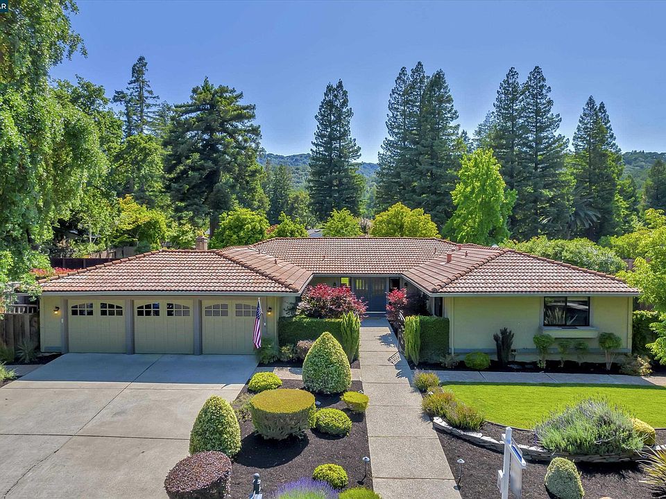Charming West Alamo home on a private Lane. This stunning single-story home located in the heart of Alamo on an expansive flat lot with pool is the ideal home! With 2890 SF of living space, this 4-bedroom 3.5 bath updated home provides the perfect blend of style and comfort. The spacious kitchen featuring a Sub-Zero refrigerator, Bosch double oven, granite counters, and large island is a chef's delight. The kitchen opens into an inviting family room with gas fireplace and lovely yard views, perfect for all your family activities, entertaining guests or relaxing after a long day. The home also features a formal living room with vaulted ceiling and gas fireplace, as well as an open formal dining room with built-ins. The fabulous primary suite has access to 2-bathroom areas as well as 2 walk-in closets. Sliding glass doors from the family room, living room and primary bedroom offer easy access to the delightful and beautifully landscaped back yard featuring a pool with power cover, large patio area, and romantic vineyard, as well as ample room to play, entertain and enjoy outdoor living. Conveniently located just blocks from neighborhood shops, restaurants, trails, and award-winning schools, this is Alamo living at its finest!