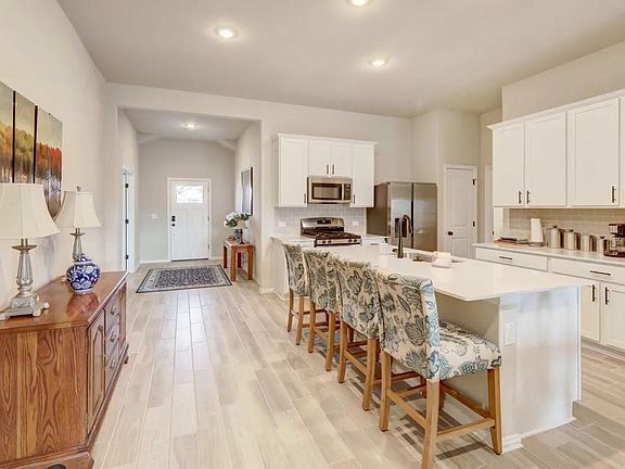 Stainless-steel appliancesSpacious yardSubway tile backsplashLarge center islandOpen concept livingWood-look tile
