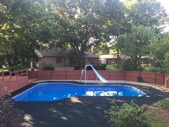 Home has been remodeled & brought back to life in fabulous El Dorado! Beautiful ranch w/over 3,500 sqft offers a finished walk out basement. Perfect location w/view of Dye's Walk golf course, mature trees & brand new concrete pool deck and renovated in-ground pool with added tanning ledge and new liner with modern design. Desirable custom home community. Fabulous brick fireplace in the basement family room. Oversized 2.5 car garage w/lots of storage & work shop space. Updated kitchen, baths, elegant tile floors, fixtures & so much more! Tons of storage in walk out lower level.
