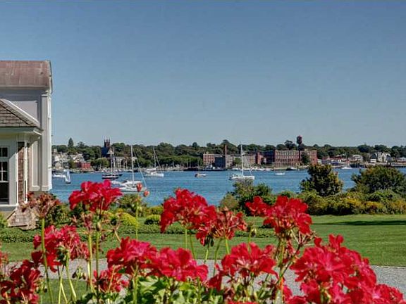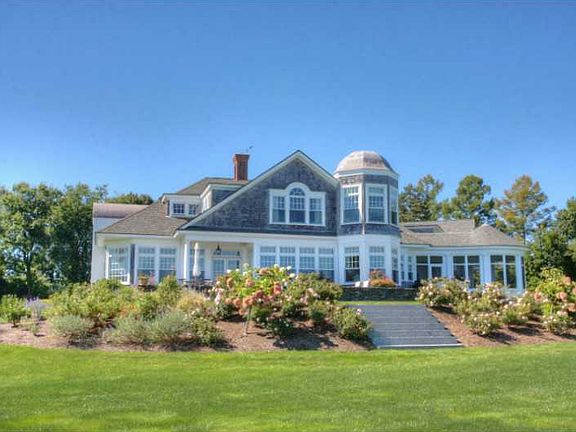 Commanding views of Bristol Harbour & beyond! Breathtaking Nantucket stone & shingle estate on 3 private acres on coveted Poppasquash Pt. Richly detailed interiors, gorgeous kitchen & baths, superbly designed open plan, luxurious custom appointments
