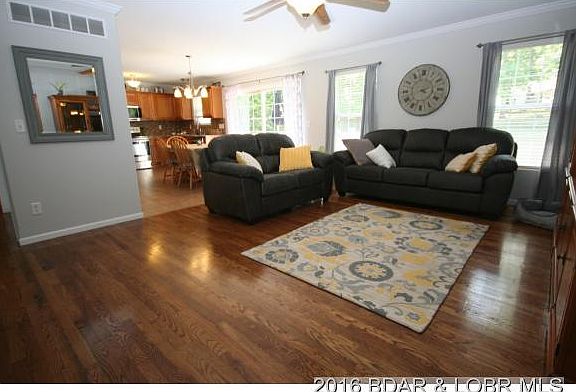 Contemporary 4BR, 3BA 2-story home on gentle lot in quiet neighborhood in Camdenton. Area of nice homes. Beautiful wood and tile flooring. Neutral colors, spacious master with large bath and walk-in closet. Lower level family room is a great gathering place. Entertain guests on the deck just off the kitchen. Plenty of room for outdoor activities in large back yard. 2-car attached garage. Convenient city water and sewer. Close to shopping and schools.