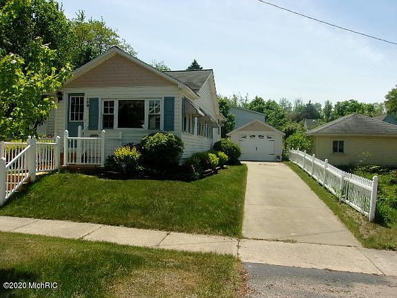 When you drive by this one, you will want to to see the inside! Exceptional, well maintained home inside and out. Nicely landscaped with flowers and shrubs. The sprinkling system keeps the lawn nice and green. Paved driveway brings you to a one car garage. There is a well decorated backyard with patio area for backyard barbecue's and entertaining friends and family. There is also a 3 stall garage and storage shed. Now for the inside! Very cozy eat-in kitchen, formal dining room, living room and enclosed four seasoned front porch, two bedrooms and a nicely remodeled bath with large walk-in ceramic shower. Full basement with partially finished laundry area and possibly a third bedroom. Central Air. Minutes from Lake Michigan the River Walk and downtown Manistee.