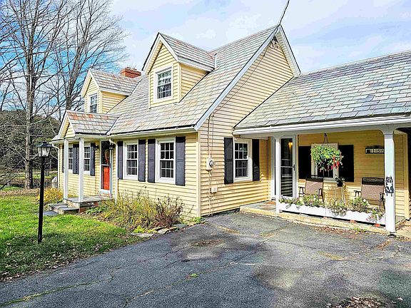 This charming 3+ bed, 3 bath Cape has curb appeal and picturesque water and ridgeline views! Nestled in a country setting, this charming home sits up, cute as a button, above the Jacksonville Pond. A gently sloping yard, excellent open space & giant maples create a perfect backdrop to enjoy the beauty of this landscape. A paved driveway leads to a convenient carport with a covered walkway to the entry. Inside, the main floor of this home is a classic design that includes a spacious eat-in kitchen w/breakfast bar, formal dining, and living room with a gas fireplace. The living room and kitchen both have large picture windows framing a tranquil view of the backyard and pond below. The main floor also has a guest half bath PLUS den with its own half bath. On the second floor, you'll discover three bedrooms all with hardwood floors. The spacious primary bedroom features a cozy window seat and a generous closet. Two additional bedrooms showcase delightful built-in features, adding character to the spaces. A full bathroom is also on this level. The lower level of the house is a partially finished walk-out basement with an office ( or play space!) which includes a full window and a door for proper egress that opens up to the backyard. Located near the heart of a quaint village, downtown Jacksonville offers a country store, deli & bakery, and gas station allowing you to savor the simplicity and charm of rural living with close proximity to everyday conveniences.