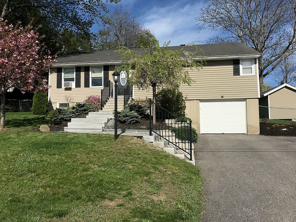 You may think "Wow!" when you pull up to this well?-kept ranch: the granite steps, paver walkway, and elegant plantings certainly set the tone. But you'll say "Wow!" out loud when you step through the front door. This house puts the "open" in open concept??half the house is one big living room/kitchen, with a soaring cathedral ceiling that creates a sense of cozy grandeur. The kitchen features stainless appliances, as well as a large bar area that allows for intimate cooking/dining; or you can head out the back door to a nice patio area and fire up the grill and dine al fresco. The living room has plenty of room for comfy furniture and a wall that will fit just about any size TV, and hardwood floors flow from this space down the hall to the three bedrooms. Along the way you'll find a beautifully updated full bath with jetted tub for those who love to be pampered. Down the basement stairs a large family room awaits you--??the perfect spot to play video games or practice guitar, or hide out with friends and a few beers. The lower level also features a large finished storage area that could also serve as a modest home office, and you have direct entry into the extra-?deep garage, where you can park your car AND motorcycle, or set up a nice workshop. You also get a nice shed to store more tools and toys, and the large lot gets a nice mix of shade from mature trees and sun, with a fine vista for sunset?-watching. This is the complete package, folks, so come see it and fall in love!
