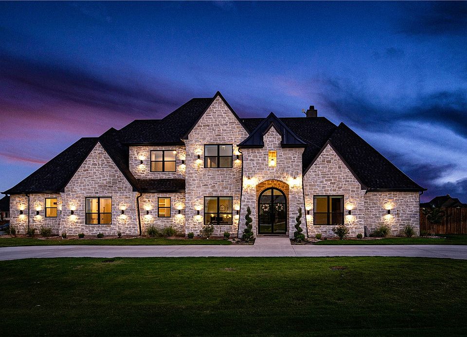 This magnificent property in the highly sought-after Royals Ranch subdivision is situated on a sprawling 1.06-acre lot, and boasts many exquisite features that will leave you in awe. The elegant entryway features a beautiful barrel ceiling, setting the tone for all that awaits. The living room greets you with a stunning stone WBFP with gas starter, complemented by large windows that offer breathtaking views of the pool. The gourmet kitchen showcases custom brick backsplash, stainless café collection appliances, a gas stove with pot filler, double ovens, and large crank-out windows that opens to the patio. A hidden walk-in pantry with a coffee bar adds a custom touch. The master suite is isolated and features dual vanities, a freestanding tub, and a lavish walk-in shower featuring dual shower heads. The master closet is generously spacious, fitted with custom cabinets, and conveniently connects to the laundry room for added convenience.