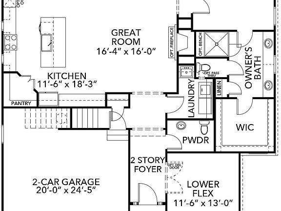 This 4 bedroom, 2.5 bath home defines comfort and charm both inside and out.When you walk through the front door, the 2 story foyer provides an inviting entry filled with natural light. The Adjoining flex room provides a great space for that work from home office, while the openness of the great room, kitchen, and dining area capture the essence of modern living while maintaining the memories of large gatherings. Embodied in the kitchen, is a design most requested by the at home chef - a large center island, an abundance of counter top space, and ample pantry space for stocking up on the essentials. With the primary suite on the first floor, you will always be just feet away from that morning cup of coffee or the included rear outdoor covered porch area. Vanity space in the primary bath is not lacking! The oversized vanity offers dual sinks, vast amount of storage, and countertop space galore. Showcased on the second floor are 3 additional bedrooms with one having direct access to the full bath. The upper flex makes for a large second home office, gaming area, or play room. The options are endless!