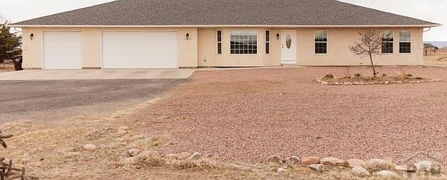 Take a look at this beautiful Dawyne Campbell home. 3 large bedrooms, 2 baths and garage that can fit 4 cars (1090 sq ft)! Sits on 1.43 acres on a paved road. Corner lot with the back covered patio having a spectacular view of the mountain range. Xeriscaped in the front yard with concrete, rock and small plants. You enter this home into a large family room, kitchen is made for entertaining with tile floors, black appliances, breakfast bar and open to the large dining area. Mud room is also tiled and is off of the oversized garage. Full basement unfinished with plenty of room to grow. Central air, upgraded blinds, cover patio, maintenance free soffits. Plenty of acreage for a to build an outbuilding.