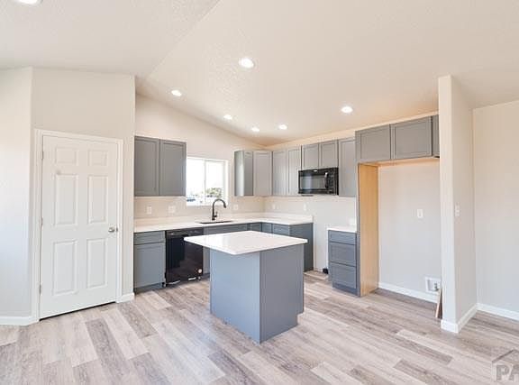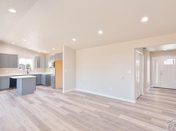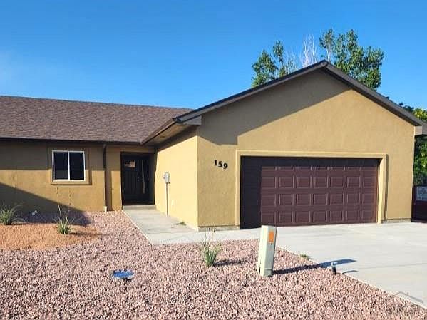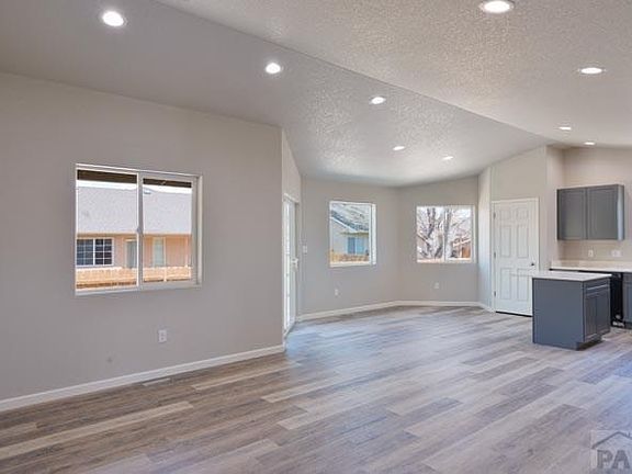 New construction in Pueblo West close to the Desert Hawk Golf Course and shopping. Three bedrooms and two bathrooms split bedroom design. The kitchen features soft-close cabinets with quartz countertops, a kitchen island, and stainless steel appliances. The kitchen has an open concept to the living room, with luxury vinyl tile and a vaulted ceiling. The primary bedroom has carpet flooring, a walk-in closet, quartz countertops, and tile bathroom floors/tile bathroom surround. The other two bedrooms share a full bathroom with the same amazing finishes! Enjoy the outdoor space with a covered back patio. Landscaping in the front yard will Be Xeriscaped with rock, Bushes, and a drip. Paved road to be complete within 30-45 days.