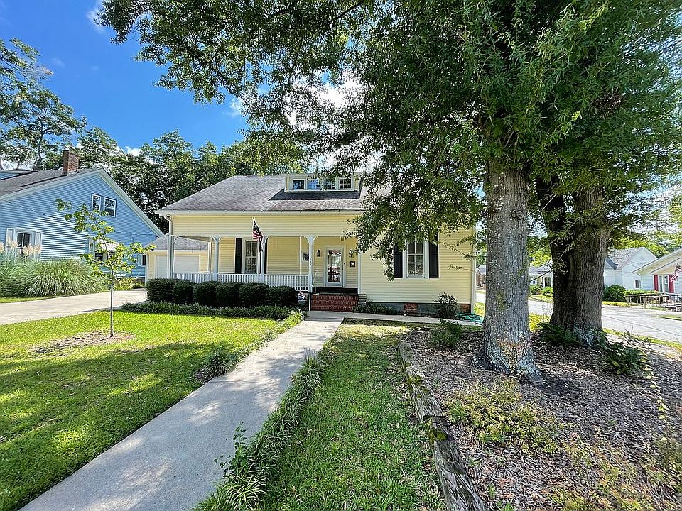 Charming fixer upper located in the historic district of downtown Elberton. Main floor has 2 large bedrooms (one has been used as an office), 1 bath. Formal living and dining room. Utility room. Screened in back porch. Kitchen includes stove, refrigerator and dishwasher. Breakfast room and large den across the back of the house. And a 1 car attached garage. 2nd floor is a finished attic space with 3 bedrooms and den area that only need HVAC, paint and carpet. One bath upstairs needs total renovation.