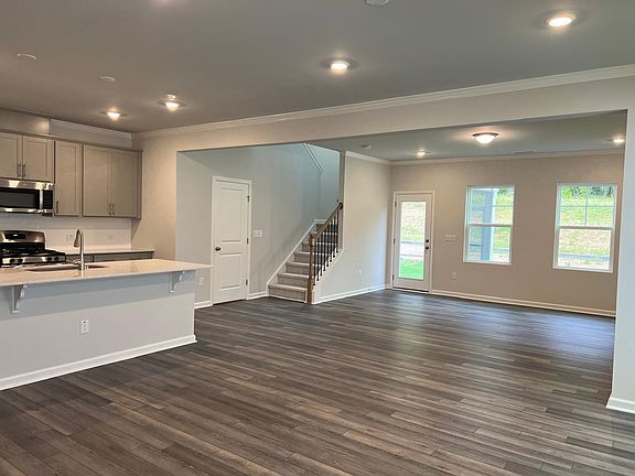 This modern two-story home features an open-concept main level with a spacious great room, dining area, and kitchen. A sliding door leads to a private patio, perfect for outdoor entertaining. Upstairs, you'll find a versatile loft, secondary bedrooms, and a luxurious owner's suite complete with a spa-like bathroom and a walk-in closet.