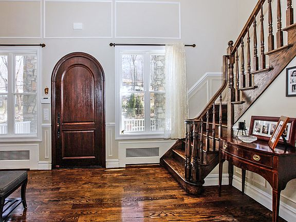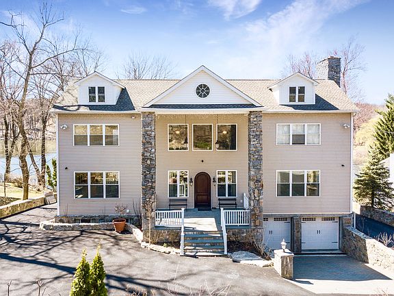 This exquisite, custom built lakefront home exemplifies luxury living at its finest. Sprawling four bedroom, four and a half bath beauty captures the best of country living in a tranquil and convenient locale. You will be left breathless from the moment you enter the two story foyer with sweeping mahogany staircase. The elegant great room offers ten foot coffered ceilings, stone fireplace and sliding glass door out to expansive deck overlooking the lake. Gourmet kitchen is a perfect blend of old world meets modern amenities. Designed using turn of the century, German metal cabinets, quartz countertops and profession Wolf range. Formal dining room also has coffered ceilings with door out to deck offering breathtaking views. Luxurious master suite features stone fireplace, massive walk-in closet, lavish bath and private balcony where you can enjoy enchanting sunset views. Two additional bedrooms are also suites, one offering private balcony. Lower level is set up as a mother daughter with living room, kitchen, bedroom, den, bath and private patio. Enjoy swimming, fishing, kayaking or canoeing from you very own private, lakefront oasis. Convenient location, close to train, highway, great local restaurant and shops. All this and only an hour North of NYC.