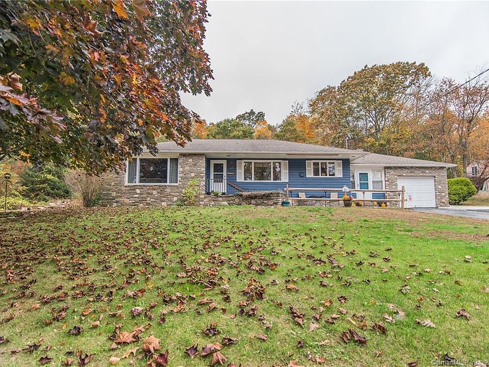 Stone faced, sprawling ranch style home has unique features you won't find in any other home. Large living room with cozy wood burning fireplace. Spacious eat in kitchen has ample storage and natural light floods in through windows. Den with another wood burning fireplace and sliders that lead to screened porch. Laundry room on main floor. Master bedroom boasts cathedral ceilings and custom beam. Separate propane wall heater. Bedrooms are all generously sized and on opposite side of home. Large, full bath. Basement has tremendous storage space. Three heat sources in this home- electric/heat pump unit, wood burning outdoor boiler, and oil baseboard. Fabulous outdoor entertaining area including stone fireplace and huge concrete patio. Buyer/Buyers agent to verify all info. Town card square footage not accurate to actual square footage of home.