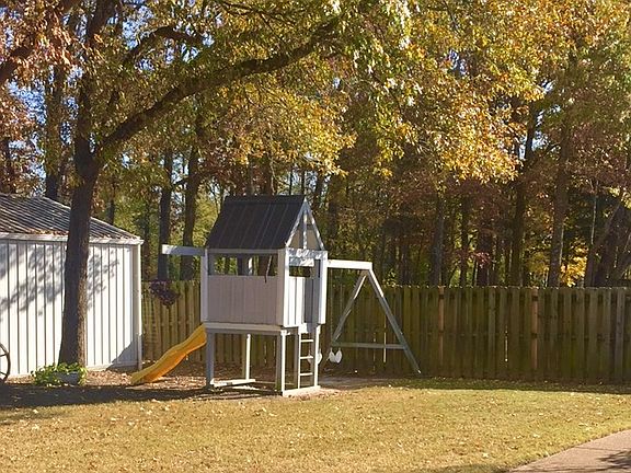 Lots of curb appeal and move in ready! This spacious 3 bedroom, 2.5 baths sits on a private half acre lot with mature trees. Less than 1/2 mile to Medina Middle School, South Gibson High School, and new city park. Downstairs was modeled last year and includes new wide planked hardwood floors on the main level. The master bedroom on main level has sitting area, his and hers walk in closets, master bath recently renovated with marble tile floors and new vanities, and updated shower. Cedar post in dining room and on the back porch. Large living room and a den with gas fireplace just off the kitchen. Kitchen has solid surface counter tops and a walk in pantry. The front yard was professionally landscaped last year. The backyard is your oasis with beautiful trees, fenced in yard, raised flower beds/herb garden. The 16 X 17 metal shop in the backyard matches the house. It has electric, cable, an AC unit, cabinets and a work bench. The shop has been insulated and covered in barnwood style panels. A large storm shelter is recessed in the garage floor. And a matching playset can stay or be moved.