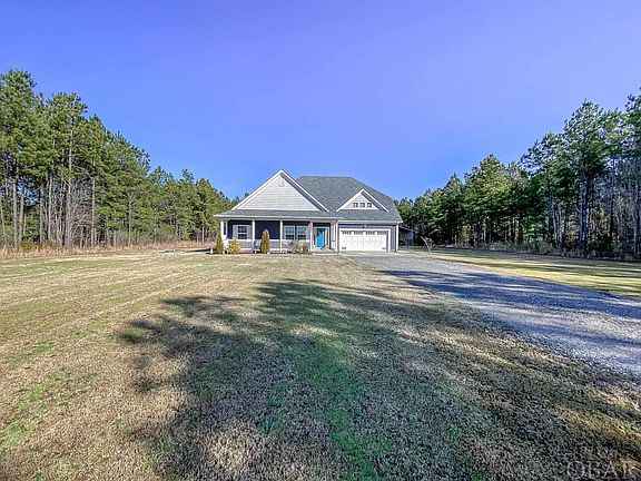 Don't miss out on this 10 ACRE private, wooded property located in the heart of Moyock. This 4 bedroom, 3 full and 1 half bath Ranch has an open floor plan with entryway opening to a formal dining area , expansive living room with cathedral ceilings, gourmet chef's kitchen with granite counters and a breakfast nook. The beautiful first floor master bedroom has a bathroom with a walk-in shower, a soaking tub, double vanity sinks & two walk in closets. The FROG is an over sized bedroom with a full bathroom and walk in closet. Remaining bedrooms feature walk in closets as well. Other amenities include two car garage, screened in porch, shed with a bar area with electric and a carport that will hold a 32 foot travel trailer.