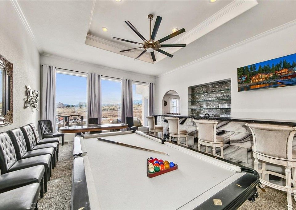 • Ceiling Fan(s), Crown Molding, Cathedral Ceiling(s), Separate/Formal Dining Room, Eat-in Kitchen, Furnished, Granite Counters, High Ceilings, Open Floorplan, Pantry, Storage, Bar, Bedroom on Main Level, Jack and Jill Bath, Main Level Primary, Primary Suite, Walk-In Pantry, Walk-In Closet(s)