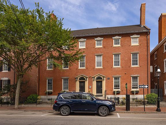 The Sheafe House at 159 State Street - where historic charm meets modern comfort in the heart of Downtown Portsmouth. Built in 1827 and the entire building masterfully renovated in 2005, this landmark residence blends period detail with contemporary amenities including an elevator, sprinkler system, central AC and deeded 1 car parking. Inside, soaring 9-foot ceilings, wide pine floors, and oversized 6-foot windows fill the open living space with natural light. Exposed brick, original wood beams, and a gas stove insert create warmth and character, while the kitchen features a large island with bar seating and stainless steel appliances. The spacious primary suite offers a walk-in closet and en-suite bath, with a second bedroom and guest bath providing flexibility for guests or home office. One-touch lighting, dimmers, a Nest thermostat, and in-unit laundry add convenience. With award-winning restaurants, boutiques, and the waterfront just steps away, this residence delivers the ultimate downtown lifestyle.