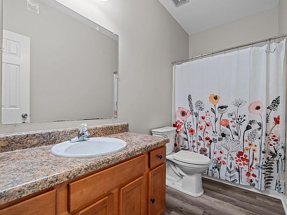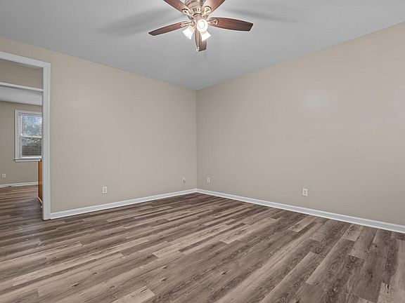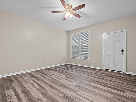 Charming 3 bedroom, 2 bath ranch-style home offers a perfect blend of modern upgrades and cozy charm. Step inside to discover 9 ft ceilings that create an open and airy atmosphere, new paint and new LVP flooring throughout. The spacious primary suite is a true retreat, featuring a generous walk-in closet, double vanities, and a luxurious garden tub/shower combo, providing the perfect space for relaxation. The eat-in kitchen is ideal for both everyday living and entertaining guests. The additional two bedrooms provide ample space for family, guests, or a home office. Step outside to enjoy the beautifully landscaped yard, complete with a covered 5x8 back porch and a large 10x22 patio, perfect for outdoor dining and gatherings. The quaint backyard is fully enclosed by a privacy fence, ensuring a serene and private outdoor oasis. A charming fountain adds a touch of elegance, while the 10x12 outbuilding offers extra storage or potential for a workshop. The single car garage provides convenience and security, and the home is equipped with gutters for added maintenance ease. Convenient location! Don't miss the opportunity to own this beautifully updated and meticulously maintained home!