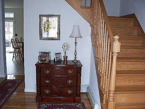 Spacious colonial set toward end of cul de sac road. Nicely landscaped, large, fairly level back yard. Home boasts 9' ceilings and hardwood on first floor, gas fireplace, central AC, bright, spacious rooms, SGD to deck off breakfast nook, Wood stairs, whirlpool tub in master, large, unfinished basement.. Great Value!!