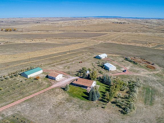 159 Sunny Slope Rd. - Welcome home to Wyoming! This stunning estate sprawls over 120 acres of beautiful and functional land with alfalfa and natural grass hayfields, corrals, and a great layout. The 2,700 sq ft home is surrounded by stamped concrete that welcomes you into the open concept plan with 4 bedrooms, 3 bathrooms, and tasteful updates throughout. The home is nestled in many mature trees and landscaping that still affords magnificent views of the open spaces. There is plenty of room for equipment and toys in the 32x32 garage and 34x56 shop, both heated with concrete floors. The 34x64 and 30x48 utility buildings provide all the space you will need to maximize this opportunity. With your own private well and easy access to the highway and interstate, this property is a true gem!
