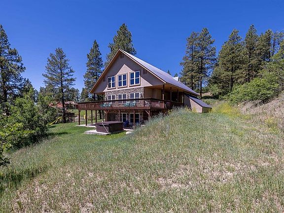 Mountain Listing! This gorgeous 6 bedroom, 4 bath home is conveniently located between downtown Pagosa Springs and Wolf Creek, making it an ideal home for a vacation home. This home is currently being used as a short term rental and Sellers are open to transferring* current and future bookings. This home has had some updates including the uncovered deck, new paint, updated furniture, updated HVAC and more. There are multiple outdoor living spaces including a wrap around deck with gorgeous views of the mountains and a grill that is hooked up to the gas, a walk out basement with a large, covered stamped-concrete patio and a hot tub. Inside there is a large, two story great room with large windows giving some of the most breathtaking views of the mountains you or your guests will see in the area. The kitchen, great room and dining room are open to each other, giving a large space for entertaining. There are two bedrooms and one full bath on the main floor. Upstairs you will find a loft that can be used as an office and/or additional living space as well as the primary suite which has a fireplace, washer dryer hookup, dual walk in closets and a redone ensuite bath. Downstairs there is an additional living area, 3 bedrooms, 2 full bathrooms, a laundry room and a walk out to the back yard and back patio. This property is unique in that it is 3 consolidated lots totaling 1.44 acres. This gives opportunity for expansion, a garage or a guest home if desired. There is a cleared pad that has been leveled and utilities are ready if you decide to add an additional living space. This property is next to the communal pond and picnic area available to San Juan River Village Residents. A 20 minute drive to the ski hill, close by river access and a 10 minute drive to downtown Pagosa Springs and hot springs, you don't want to miss this home!