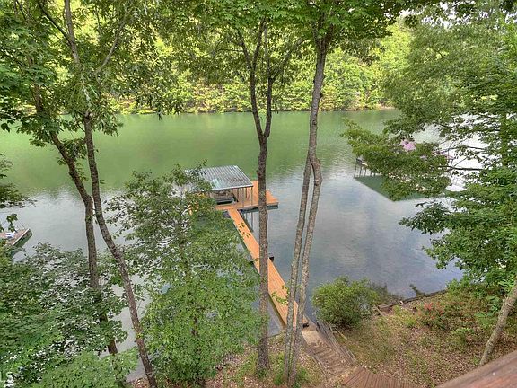 A true log lodge positioned about 50 ft. from the deep waters edge on beautiful lake Blue Ridge. The home has a fabulous open floor plan for family gatherings and events. Multi level porches and decks, walls of glass to view the water and US Forestry service land across the lake. Stacked stone fireplaces, 2 car garage with guest quarters above on 1.35 acres.