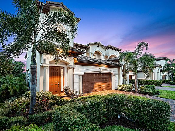 Beautiful large 2017 built Veneto corner townhouse 3 bedroom 2.1 bath and 2 car garage with the best lake views and golf views of the 8th and 5th hole. This gorgeous custom kitchen features 42'' raised panel white cabinets, large island with granite and silestone throughout, stainless steel appliances, upgraded tile flooring, open air and covered lanai's with breathtaking views. Private elevator to upstairs leading to grand master suite with huge his/hers closets all custom outfitted, extra large master bath with dual sinks, separate shower and tub, two other big bedrooms, large laundry room, extra storage, all premium impact glass throughout, and much more! HOA includes roof maintenance, exterior building maintenance including lawn maintenance ,cable and alarm system.