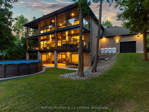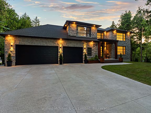 Welcome to one of Kincardines most breathtaking lakefront homes. You wont want to miss 159 Upper Lorne Beach Road, where most homes grab your attention this one leaves you speechless. Beyond the striking iron gates of Mystic Cove lies a one-owner custom home built in 2018 by luxury custom builder. This 3-bedroom, 5-bath masterpiece showcases elegance and craftsmanship throughout, with seamless hardwood and tile floors, 9-foot ceilings, and 8-foot solid core doors. The open-concept living area features a stunning double-sided propane fireplace and a discreet media hub. The chefs kitchen boasts granite countertops, a premium 48-inch, 8-burner propane stove, full fridge/freezer, beverage and wine fridges, and 12-foot patio doors opening to a tiered deck with glass railings, solid wood posts, and vinyl decking. Upstairs, every bedroom has its own ensuite with quartz counters and Bluetooth mirrors. The primary suite offers a spa-inspired bath, walk-through closet, and private upper deck. The finished walkout basement impresses with high ceilings, a clear view of the water, a separate entrance from the garage for in-law or guest accommodations, and a beautiful 3-piece bath. Outside, enjoy nearly 100 feet of pristine shoreline, fine beach gravel, and your Dock in a Box the only dock in sight. Your forever retreat awaits book your private showing today! . Contact your Realtor today.