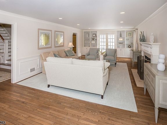 Located in Chatham Township's desirable Highlands on a quiet cul-de-sac, this Classic Colonial brims with curb appeal. Combining sophistication and comfortable elegance, spacious rooms are enhanced by abundant windows, gorgeous hardwood floors, architectural features and designer touches throughout. Set on beautifully landscaped property, the surroundings feature tall privacy trees, lush green lawns, and established plantings. An added bonus is the stunning bluestone patio with fire pit, barbecue area and stone wall. Introducing the layout is a foyer with a guest closet, powder room and classic moldings. The flow continues to the formal front-to-back living room enhanced by a gas fireplace and French doors providing an easy transition to the outdoors. The formal dining room opens to the kitchen and offers a wonderful atmosphere for entertaining. The roomy designer kitchen is the heart-of-the-home. It features brilliant white cabinets topped in quartz, professional-grade stainless appliances and a sun-filled breakfast area complete with sliders to the patio. The fireside family room is a perfect spot for casual get-togethers and everyday living. Five bedrooms on the second floor include the master suite with a gorgeous new bath and walk-in closet. Another updated full bath serves the secondary bedrooms. Not to be missed is the finished lower level offering versatile space including a locker area. The next owners will enjoy a beautiful home with many updates in a desirable location close to top-rated schools, Midtown Direct trains and downtown Chatham.