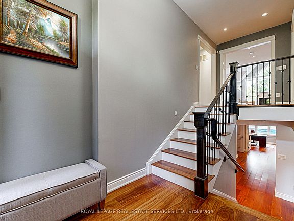 Dont be fooled by this 4,777 sq. ft. 5-bedroom, 4-bath raised bungalow in Coronation Park. It's located on a wide tree-lined crescent with a pie lot and offers an outdoor haven for family rejuvenation and recreation. Leading up to the home the front garden features sugar maple trees and flowers.The stone and stucco exterior, covered portico, and solid-core wood front door open into a two-story foyer. A wood/iron staircase connects the levels. On the upper level, African Ioka flooring flows from the private living room to the open-concept great room with a custom kitchen, dining area, and family room. A coffered ceiling, palladium window, and French doors open to a composite deck overlooking the stunning backyard. Elegant light fixtures and intricate millwork enhance the space. A separate hallway with a pocket door leads to the bedrooms. The Master retreat has a sleek en-suite with a glass shower and heated flooring. There's French door access to the deck and a 3-way fireplace. All 5 bedrooms have custom closet organizers.The ground level features Brazilian cherrywood flooring, a nanny suite, and a home theatre with a 1080P projector, sound panels, and modern controls. The landscaped backyard is an entertainers paradise with lush greenery, cedar hedges, mature trees, and saltwater pool. It boasts a pergola, cabana, and enclosed all-season hot tub. Children will enjoy a half basketball court, playground, and zip line. Enter the mudroom from the garage which includes a laundry room with two sets of washers and dryers, an owned hot water tank, and water softener. The heated double garage has storage and a side door. A double gate from the drive leads to a stone pad for parking a 28 ft boat or trailer.This home offers healthy living in a cozy hideaway, with easy access to the lake, Coronation Park, shopping, Bronte Village, highways, and transit. Excellent private and public schools nearby: Pie Lot: Front: 57 ft, North Side: 123 ft, Back: 135 + 45 ft, South Side: 165 ft