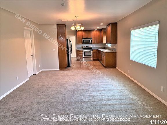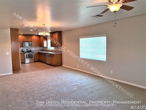Beautifully Remodeled Home in the heart of Escondido! This beautifully remodeled single-story home in Escondido has 4 bedrooms, 2 baths and approx.1,276 sq. ft. You will love the many features and amenities such as all new carpeting throughout, new decorator paint, window treatments, and plenty of space for entertaining! The kitchen has all major ss appliances including the refrigerator, granite counter tops, upgraded cabinetry and lots of storage. Both bathrooms have been previously remodeled as well with newer vanities and refinished tubs. Additional impressive features include newer air conditioning, a pet friendly back yard area, a large side yard, a large outdoor patio perfect for relaxing in the cool evening breezes, spacious living room, laundry room with washer dryer hookups (washer and dryer NOT included), and lots of windows making it light and bright. This home is move-in ready NOW and is conveniently located near the 15 freeway for an easy commute, with shopping, parks, and restaurants nearby. Small pets considered with prior approval from the owner and no smoking, please. San Diego Residential Property Management is the only authorized agent contracted to represent the owner of this property. Cal- DRE# 01859951 Beautiful Wooden Cabinetry Fully Fenced Back And Side Yard Granite Counter Tops Large Yard New Carpeting Throughout New Decorator Paint Throughout