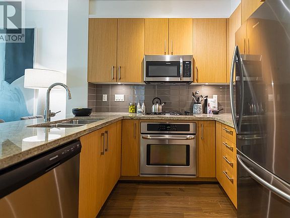 Availability From: March 15th, 2025 Bedrooms: 2 Bathroom: 2 Size: 972 sq ft (including balcony) Secured Garage Parking: 1 Secured Storage Locker: 1 Status: Unfurnished Utilities Included: Gas (cooking), Heating (radiant in-floor throughout the suite), Hot Water, Amenities (Fitness Center, Guest Suite, Social Room, Secured Bike Storage, Car Wash Facility), On-site Caretaker and Professionally Managed Utilities Not Included: BC Hydro, Phone/TV/Internet Rental Price: $3,800 per month Lease Term: Minimum 1 year Deposits: Half a month Security Deposit Move-in / Move-out Fee: As required per Strata By-laws Smoking: No Pets: No Subletting: No Welcome to Anderson Walk! Urban West Coast contemporary architecture featuring heavy timber elements to celebrate and express the unique character of Anderson Walk. This executive suite is north facing top-floor penthouse with an amazing view of Grouse Mountain Ski Slope and The Lions, has 2 bedrooms, walk-in Closet in Master and 2 full bathrooms and has an open living floor plan with 12ft vaulted ceiling. Offering sophisticated interior design details including smooth granite and marble counters, laminate wood flooring rich oak cabinetry, fireplace and brand new sleek stainless steel appliances (including gas range, oven, fridge, microwave, dishwasher) and in-suite laundry. Rent includes one parking, one storage locker, gas and hot water. Rent also includes all radiant in-floor heating in your suite making your winter evenings cozy. Anderson Walk offers a fitness centre, green space, bike storage, social room, guest suite and luxury welcoming lobby. Easy walking distance to Harry Jerome Recreation Centre, Wagg Creek Park, London Drugs, Loblaws City Market, Whole Foods Market, Lions Gate Hospital, banking, shopping, fine dining, retails, and quick and convenient access to the Trans-Canada Highway (Hwy 1) with a direct route to both the Lions Gate and Second Narrows Bridge or transit to Seabus. Beach and local mountain for swimming, hiking, skiing and snowshoeing are nearby. Credit Check, Employment Information, Previous Tenancy and Personal References are mandatory. Tenant insurance must be purchased and presented before moving in. Minimum One Year