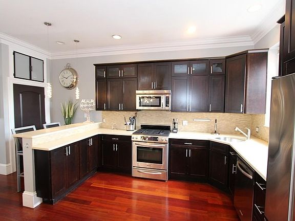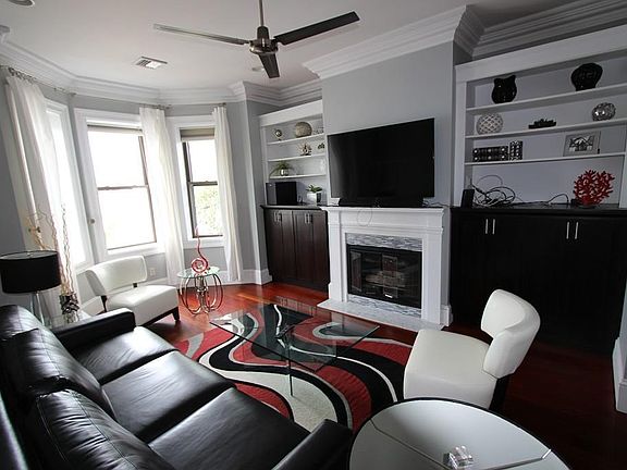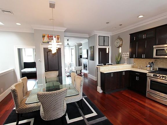 Beautiful penthouse unit with massive roof deck and sweeping views of the city. Stunning eat in kitchen with composite counters, dishwasher, disposal, and huge cabinet storage and large dining area as well as peninsula. Cozy living room with bay windows, gas fireplace, custom wall built ins and shelves. Master bath has ensuite bath and sunny deck off sliding glass doors. 2nd bed can fit a queen size bed as shown in the pictures , room is 8'x11'. Option to rent the unit furnished at $3900/mth, present furniture belongs to owner.