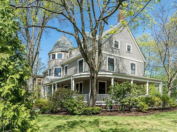 Stunning south-facing 2-level Victorian home in beautiful Hunnewell Hill! Warm and welcoming with exceptional detailing, the unit has it all. Notice high ceilings, crown moldings, wood burning fireplace with exquisite mirrored mantel, twin glass-front bookcases, tastefully updated custom kitchen with granite counters and island, well hidden half bath, and charming French doors that open to the shared wrap-around porch for enjoying drinks at sunset. Bright 2nd floor offers a large bedroom with well-designed custom closet and must-have mini-split A/C. The airy study/loft could be converted into a bedroom and has a 2nd fireplace. Classic tiled full bath has an in-unit washer/dryer. The building is well-sited with beautifully landscaped grounds and spectacular views from every window! 2-car parking and basement storage. Superb location near Newton schools, Farlow and Burr Pks., Charles River bike paths, and hip Oak Sq. Easy access to Rt. 90 east to Cambridge and Boston. Come be enchanted!