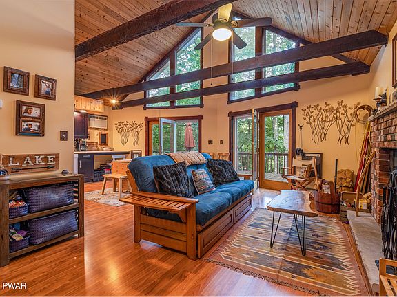 Absolutely enchanting LAKEFRONT chalet! It seems small from the road, but wait till you see all the space inside. It comes with almost 1-1/2 wooded acres! The Dock is included! The home has plenty of sleeping on the 3 floors, and 1+1/2 bathrooms, extra living space with a beautiful wet bar downstairs. Wrap around deck on the main level, another deck downstairs and walk out downstairs to the lake. It's been totally updated, new appliances in the kitchen and extremely clean. MOVE IN READY! Tink Wig is a great community with low dues. Wallenpaupack Area Schools. Close to Hawley and Honesdale for shopping., Beds Description: 1 BED 2nd, Beds Description: 2+Bed1st, Beds Description: 1Bed1st, Beds Description: 1 BED 2nd, Baths: 1 Bath Level 2, Baths: 1 Bath Level L