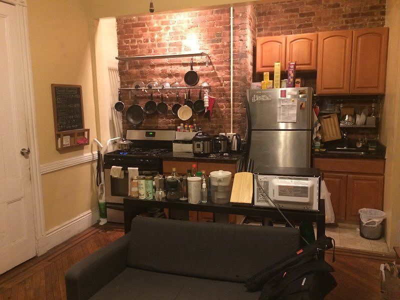 a rustik old fashioned 3bd apartment apartment in a brown stone house queen size rooms with high ceiling ,window ,hardwood floor comman area with an exposed brick fireplace wooden kitchen with ss appliances full bathroom with clove tub heat & water included only year leases